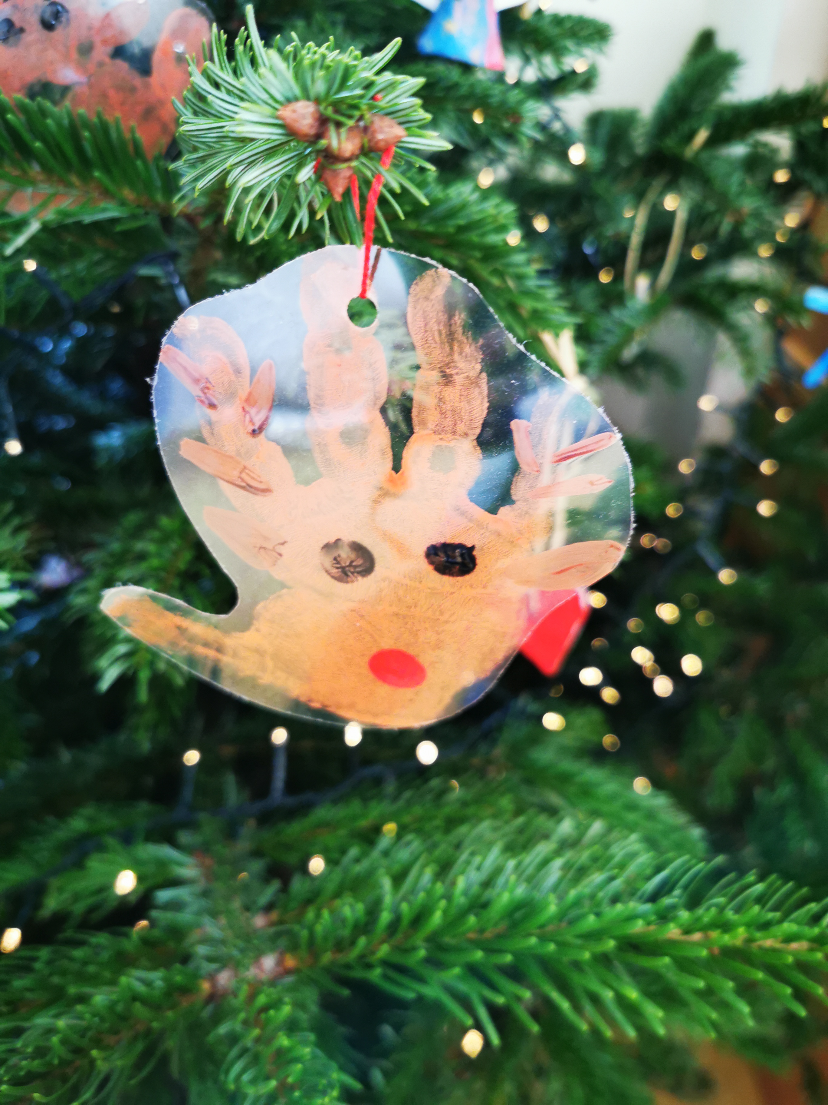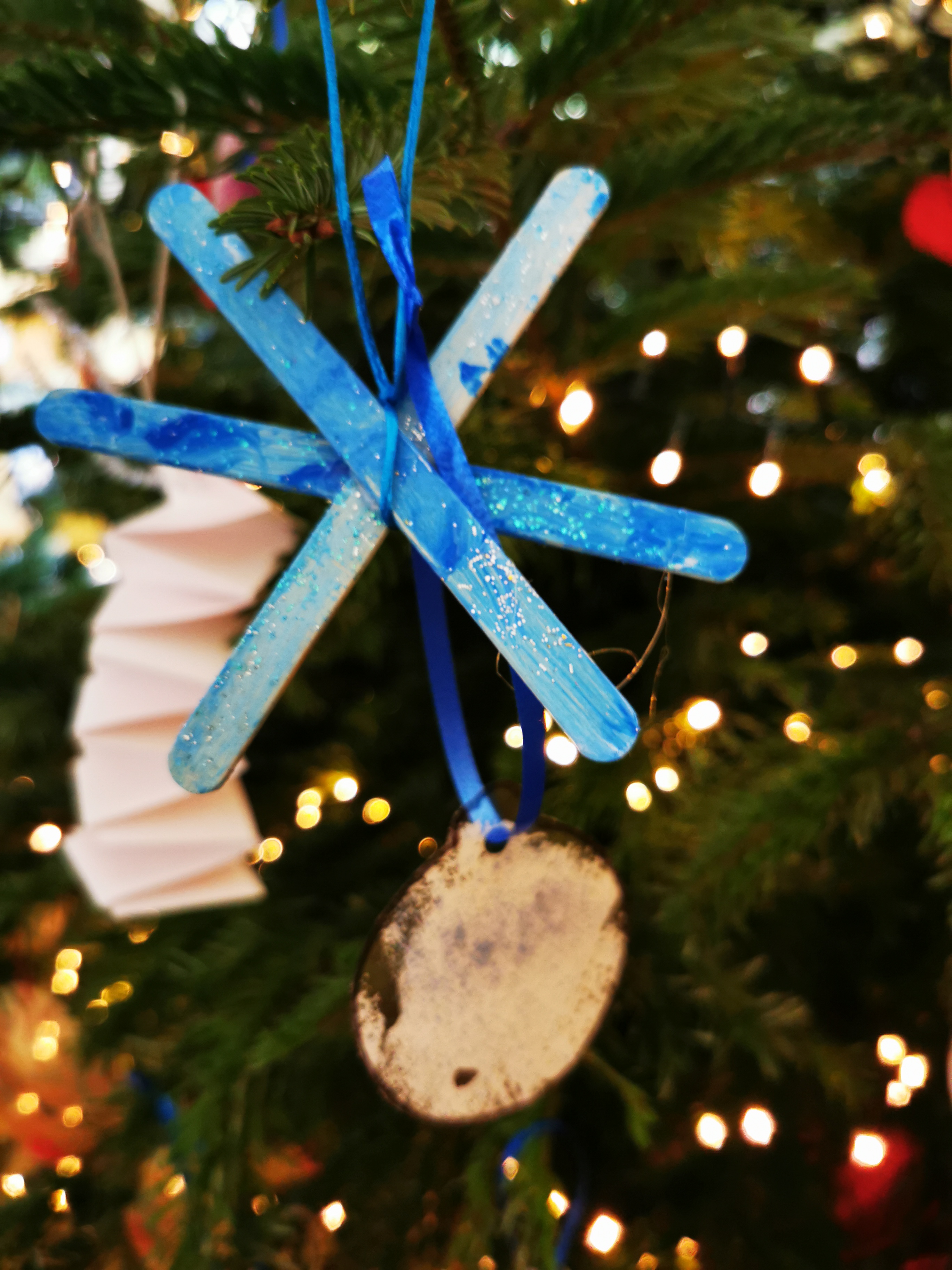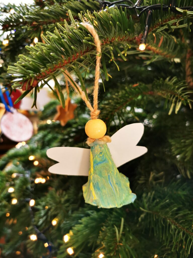 Der Weihnachtsbaum ist von den Kindern schon wunderschön geschmückt worden.