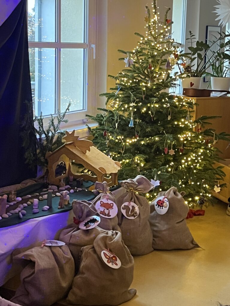 Am 2. Advent haben wir im Adventkreis Besuch vom Bischof Nikolaus bekommen. Wir haben für Ihn gesungen und er hat uns unsere Socken gefüllt in großen Säcken wieder mitgebracht.