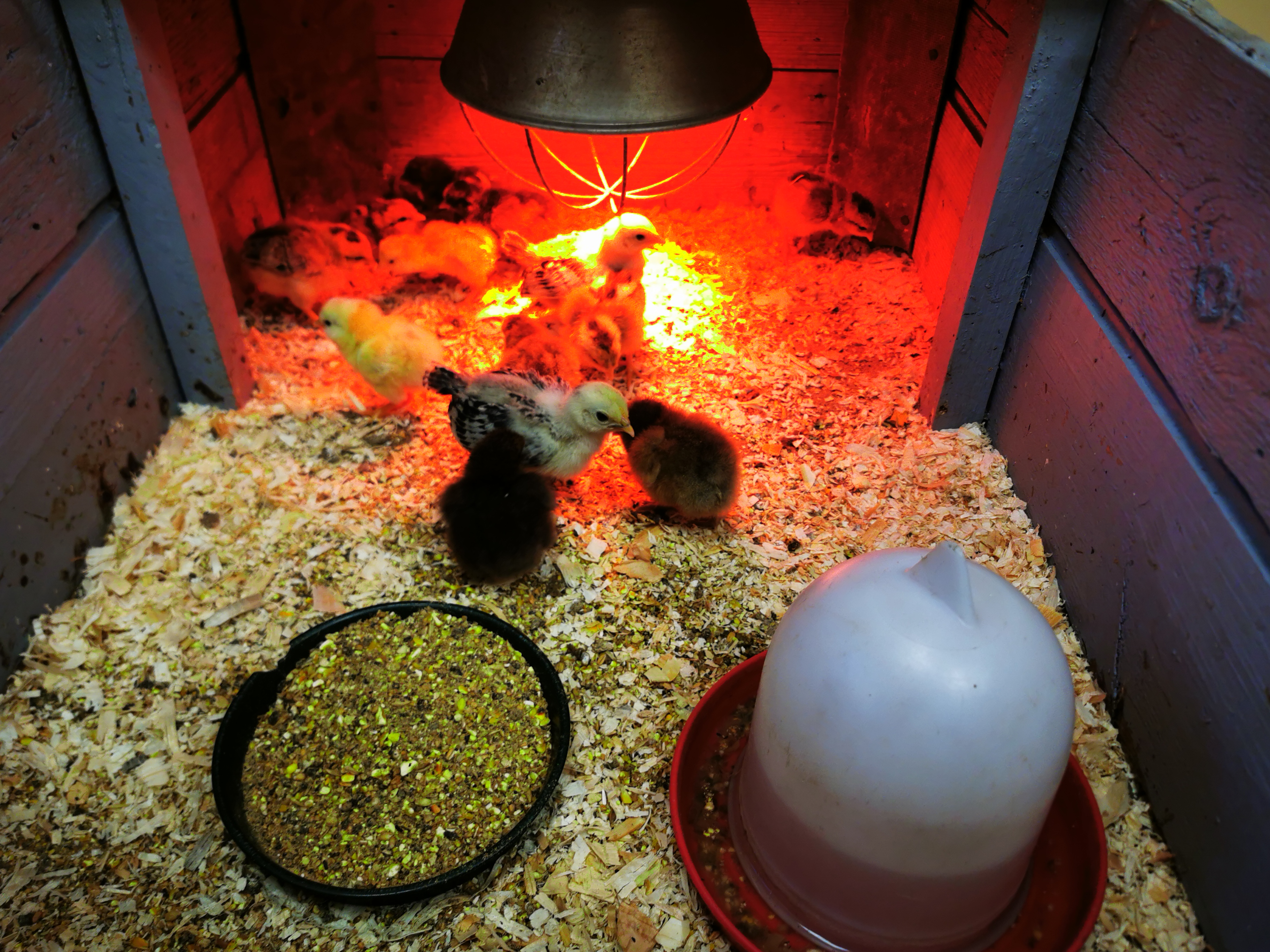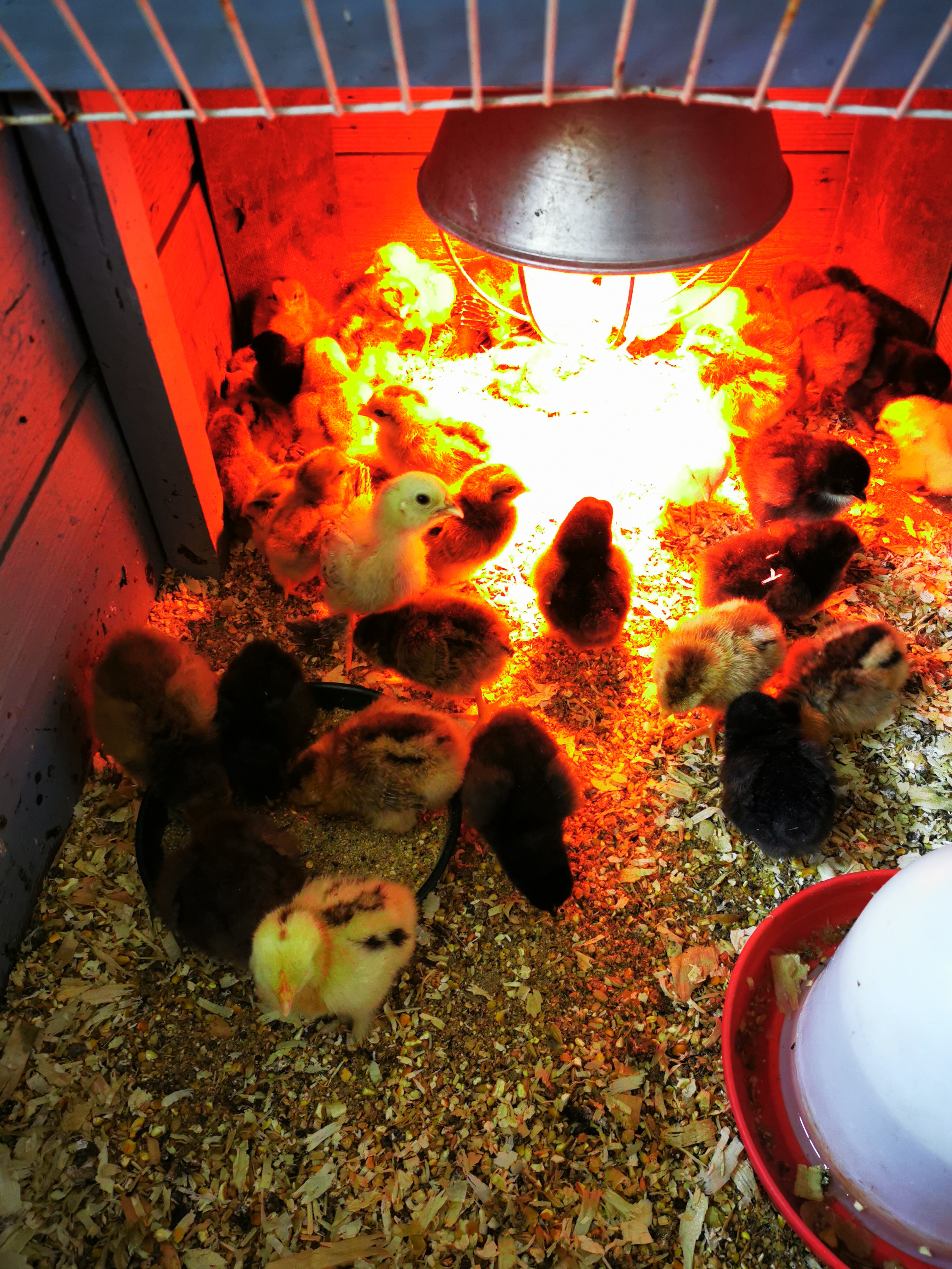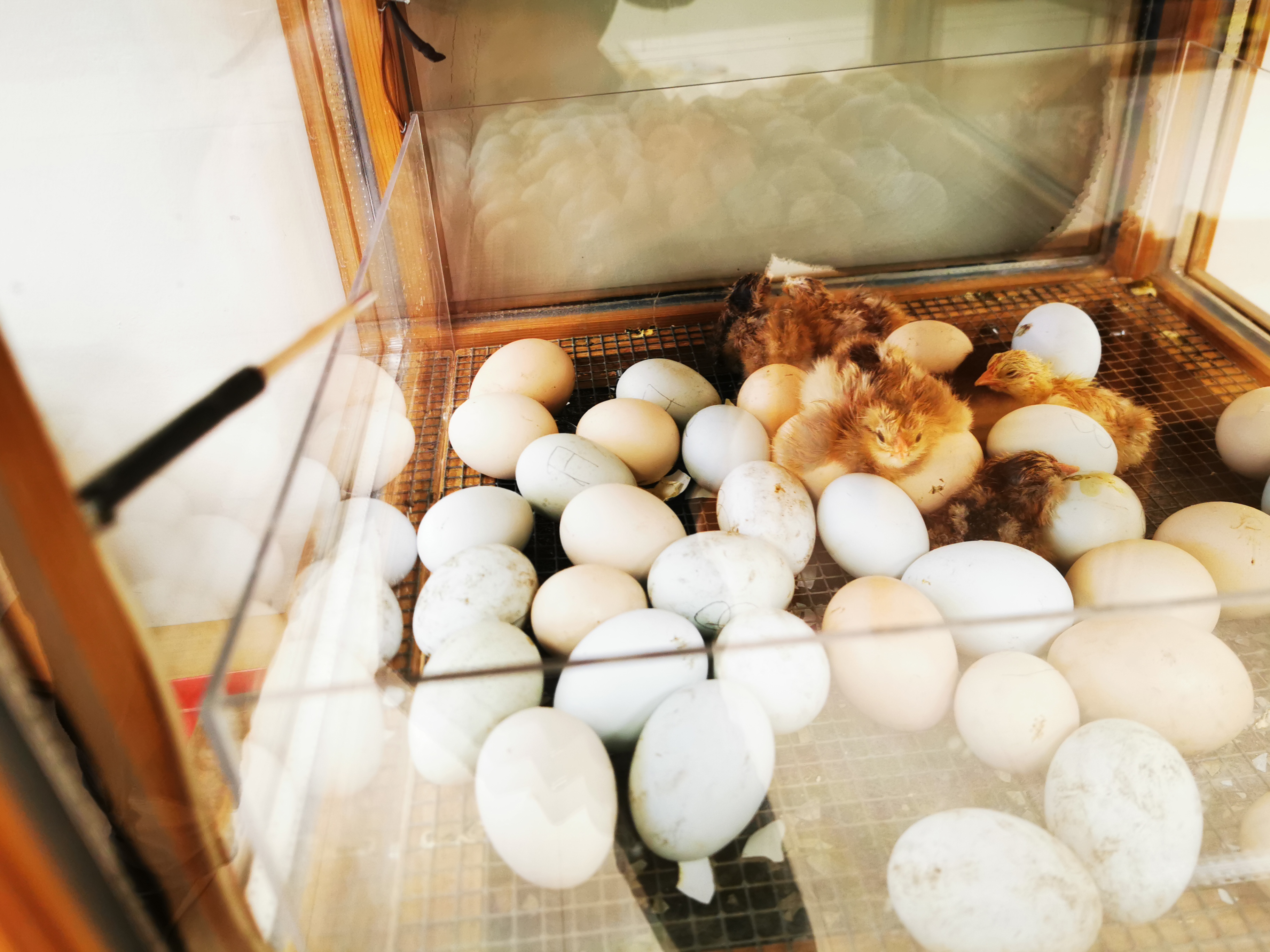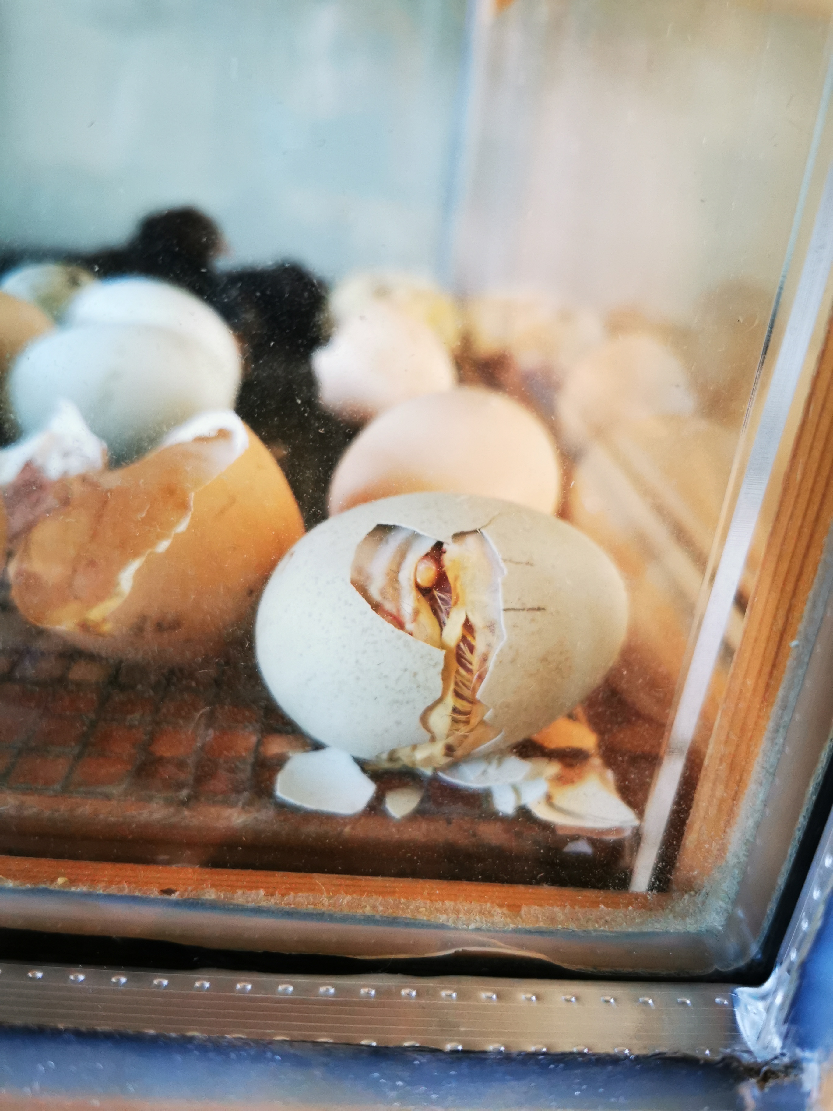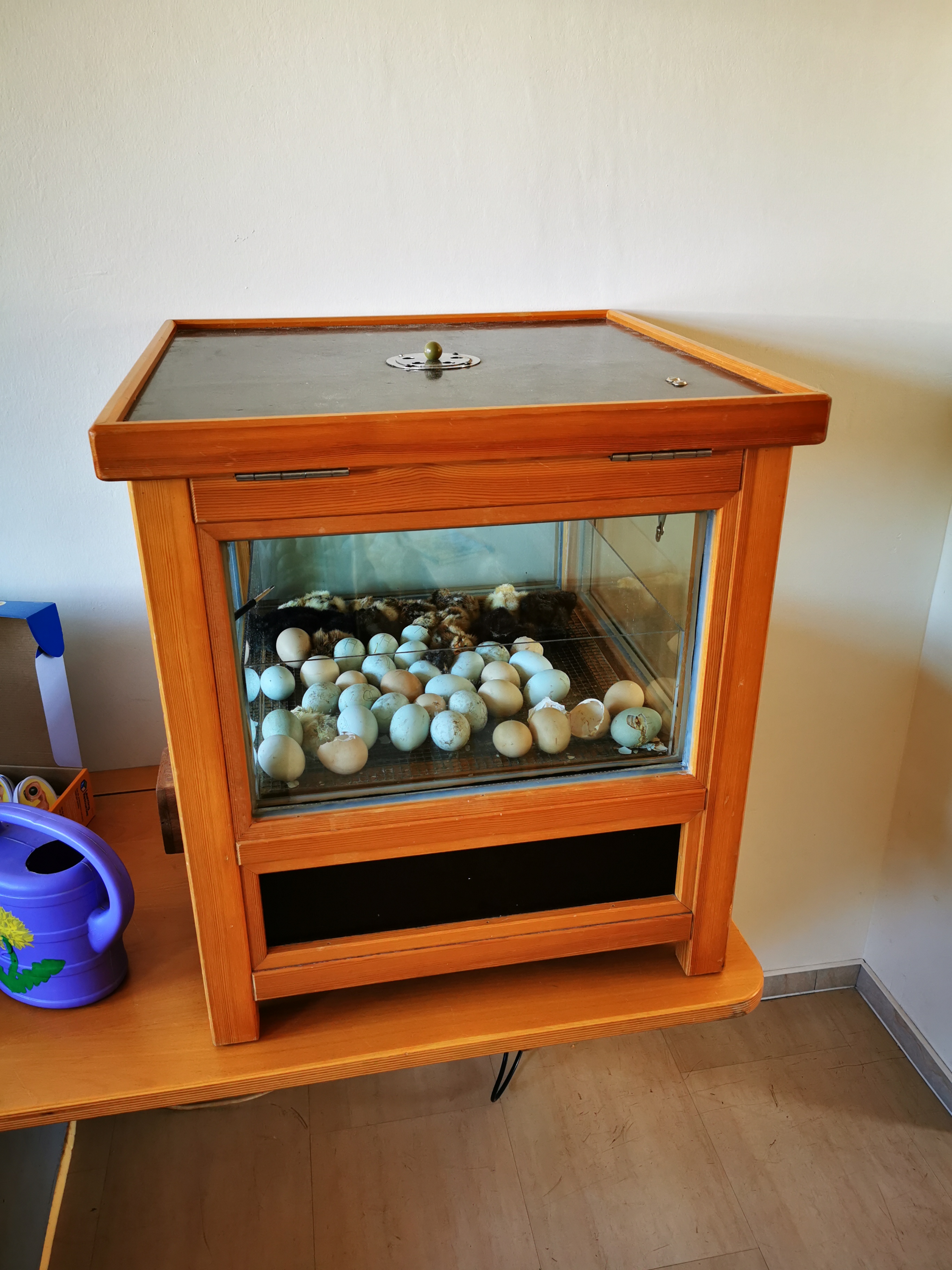 Seit Montag steht die Brutmaschine wieder in unserem Kinderbüro. Wir können beobachten, wie aus den Eiern die Hühner- Küken schlüpfen. Danach wohnen die Küken im Küken- Kasten unter der Wärmelampe, bis sie dann auf den Hof Rosemann ziehen. Die Kinder sind begeistern und schauen jeden Tag, ob noch weitere Küken über Nacht geschlüpft sind.