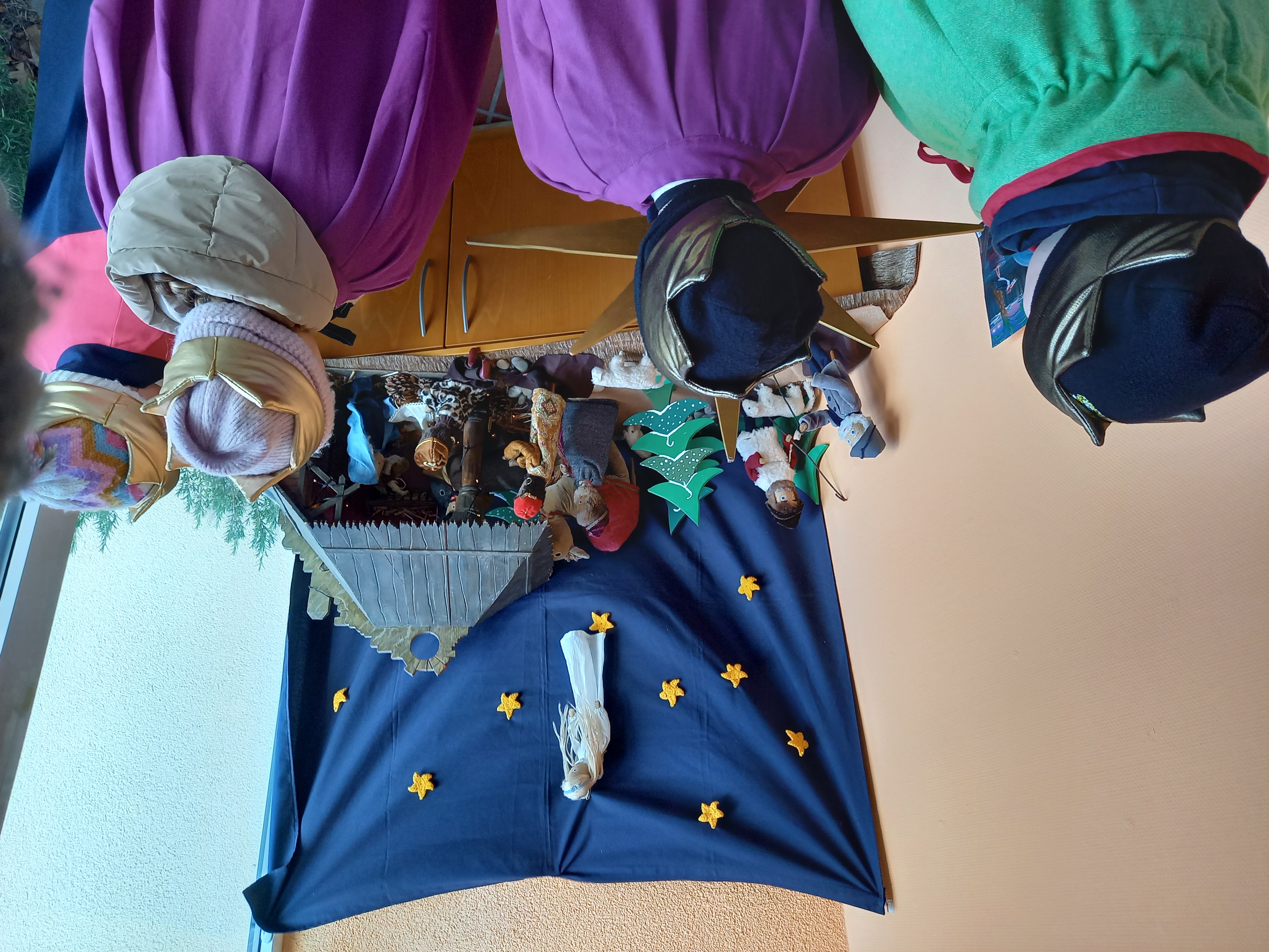 Am Freitag sind die Schüler der Christophorus- Schule bei uns zu Besuch gewesen. Ein paar Kinder waren als heilige drei Könige verkleidet. Sie haben ein Lied gesungen, den Segen gesprochen und den Segensaufkleber an der Tür angebracht.